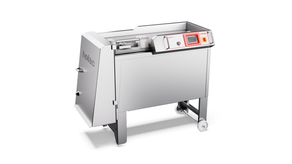 Sa chambre d’alimentation avec paroi latérale de compression hydraulique et guillotine s’adapte parfaitement à chaque produit. Les produits en vrac ou calibrés, la viande, le jambon, la charcuterie ou le fromage peuvent être chargés au choix avec un tapis d’alimentation ou avec un chariot de 200 l sur un élévateur à colonne.