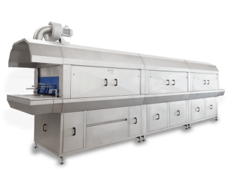 • Capacité max de 960 bacs par heure avec un temps de lavage de 45 secondes.