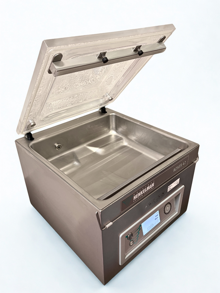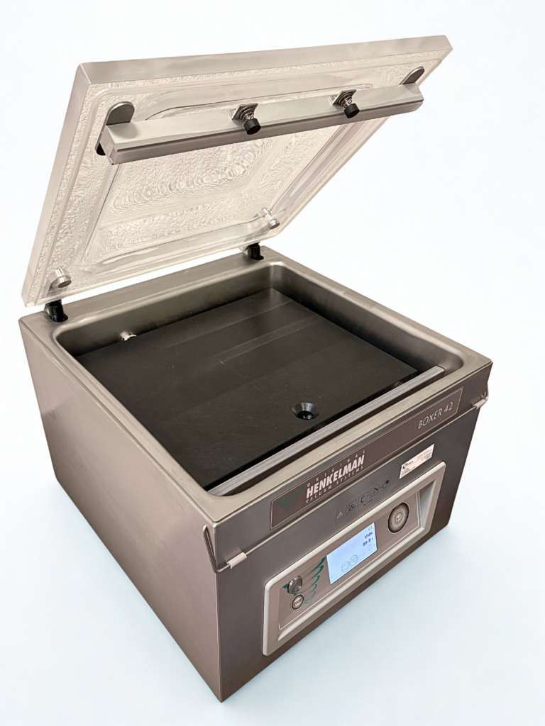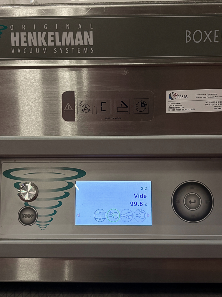-Poussage en continue grâce au chargement par trémie (105L) combiné au système de poussage par pompe rotative à palettes en ambiance sous-vide.